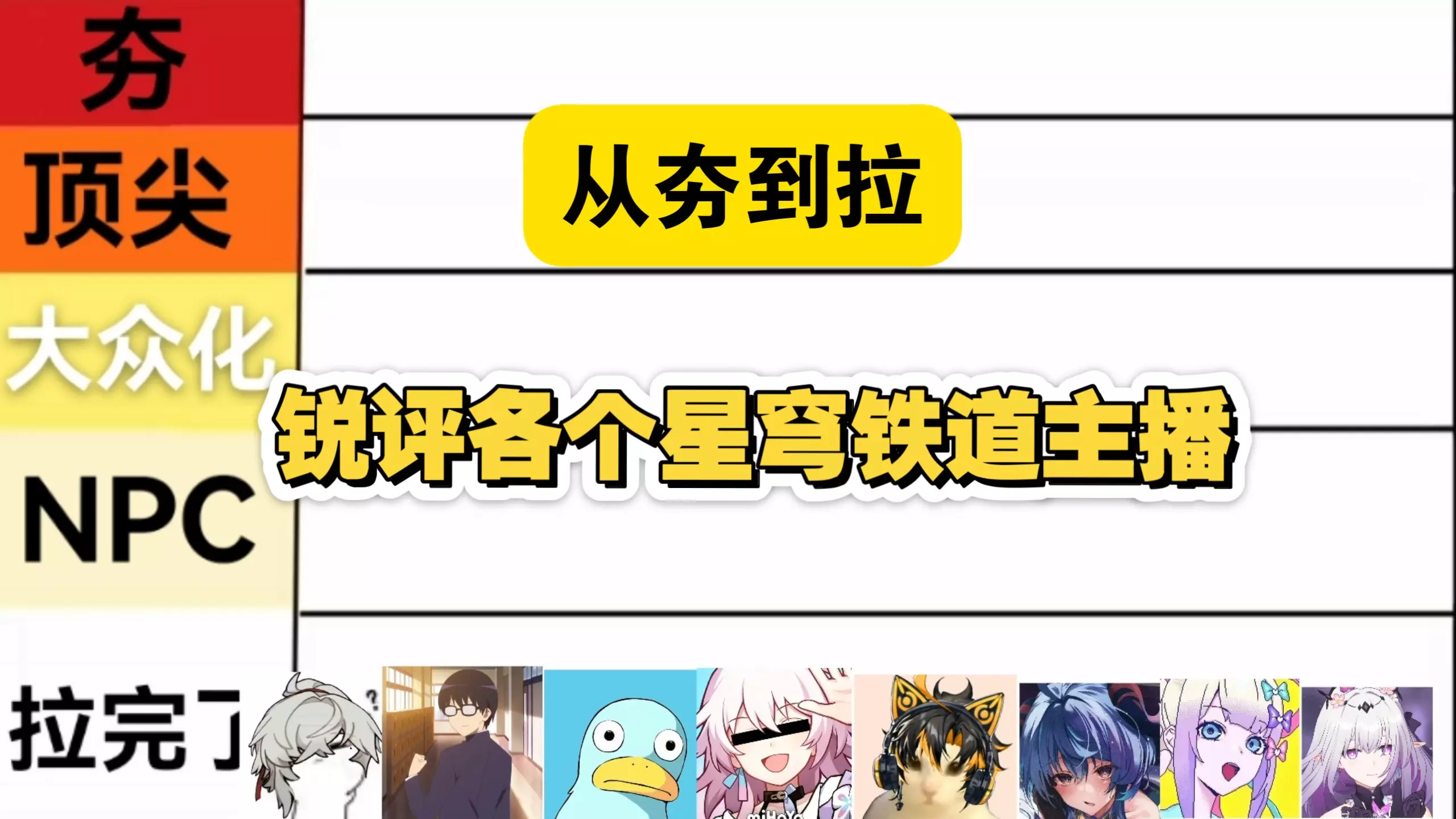 这是一篇个人向的第五主播锐评帖,作者将多位第五主播分为夯、顶级、人上人、NPC、拉五个等级,部分主播被分到夯级,还有主播因更新慢被评级,仅代表个人观点。