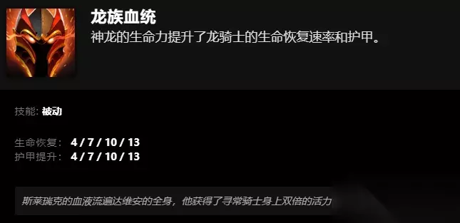 龙族血统 神龙的生命力提升了龙骑士的生命恢复速率和护甲。