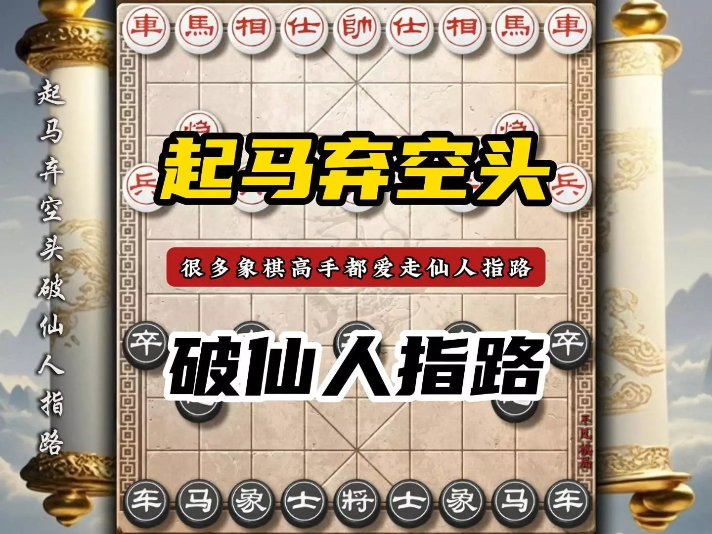 这是一则象棋游戏解说,为棋友讲解象棋仙人指路布局的常见套路,通过棋盘演示相关走法,帮助大家掌握该布局技巧。
