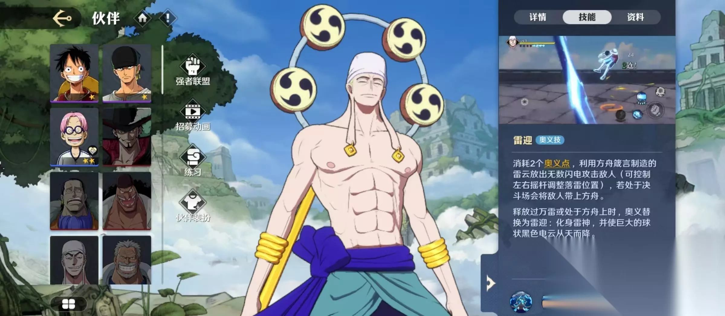 航海王壮志雄心中的雷神就是大家非常熟悉的艾尼路,对于熟悉航海王系列的玩家来说,雷神艾尼路的实力绝对留下了很深的印象,今天小编就来讲一下航海王壮志雄心雷神怎么样。作为游戏中出现的顶级角色之一,雷神艾尼路自身的技能效果以及对战过程中的表现都是值得信赖的,具体情况一起往下看。
