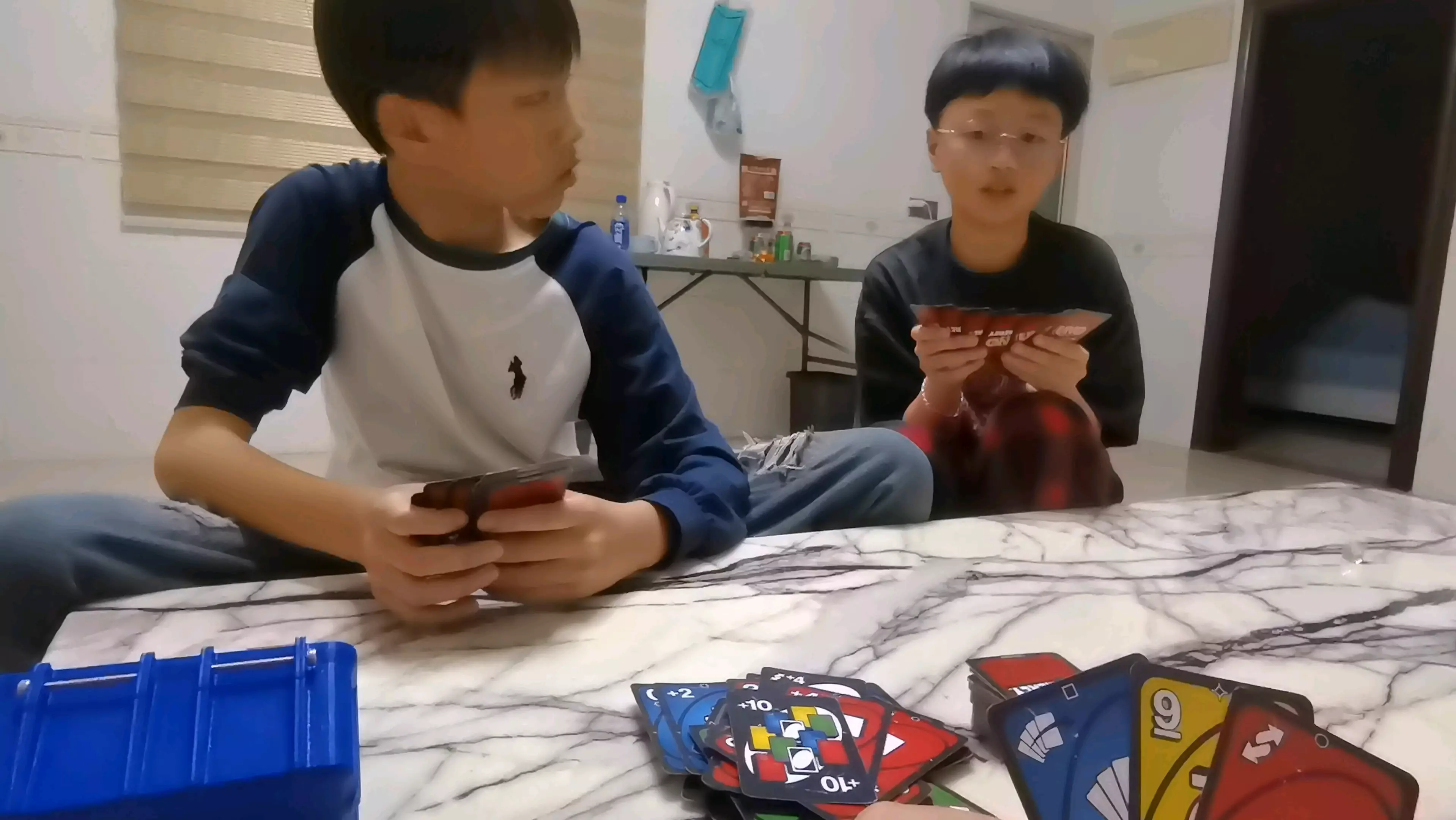 这是一则和女朋友一起玩UNO牌的趣味录屏,过程中两人出牌互动,女友的反应充满欢乐,展现了玩UNO牌的轻松有趣氛围。