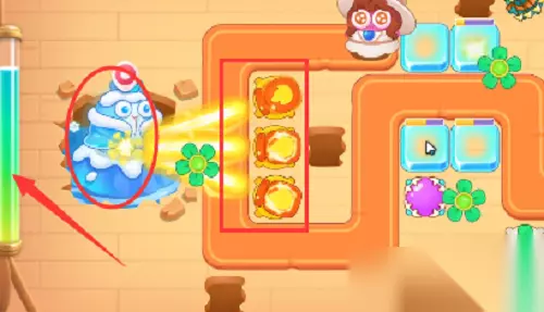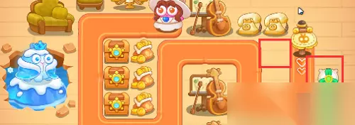 2、风扇的AOE会将左侧的宝箱打开获得一个火炮塔,然后再利用火炮塔清除上面的宝箱。