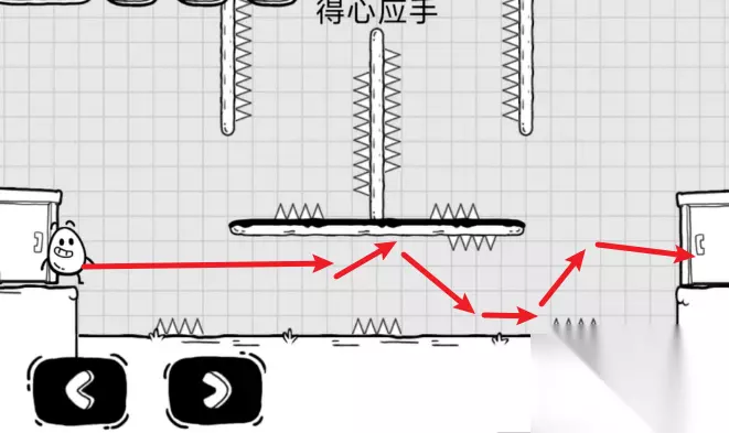 10、第三十关:利用右侧的按钮推动角色往右前进,到达门下方后,推着往上即可。