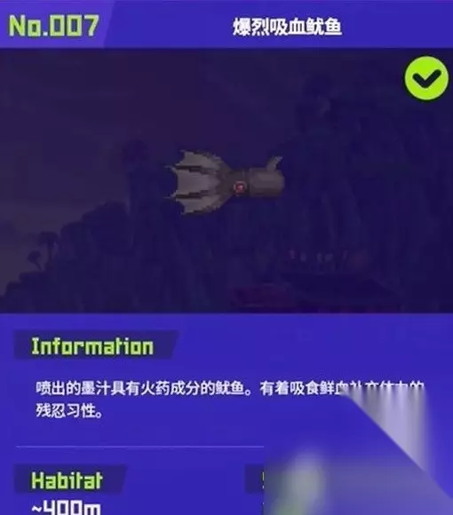 7. 爆烈吸血鱿鱼:分布在冰河通道400米,没有武器要求。