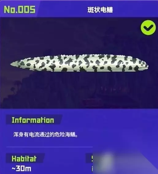 5. 斑状电鳝:分布在海底30米,全身通电,捕它时需要保持好一定的距离,这个没有武器要求。