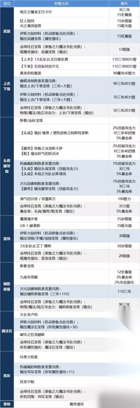 【二】装备附魔 查询其他过渡用附魔请善用游戏内【卡片辞典】功能。 附魔宝珠:技能攻击力>技能等级