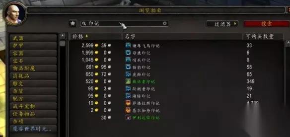5、购买雕文 海豚印记、跃潮者印记 在拍卖行搜索印记即可购买。