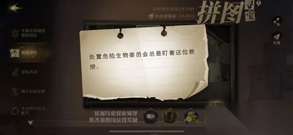 处置危险生物委员会总是盯着这位教授、其实只要再坚持几秒钟,我就把你从扫帚上掉下来了和在禁林边缘,似乎偶尔能找到破碎的福特车的零件是今天的拼图线索,相信很多的玩家都知道具体的位置了,那么不知道都玩家赶紧和小编一起来看看吧。