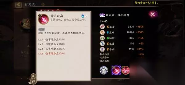 一、阴阳师妖刀姬UR技能介绍 普攻:高额基础伤害技能点满后,普攻能造成125%的伤害,这个伤害倍率算是普攻里的天花板级别,让她即使不放大招也能保持稳定输出,为爆发打下基础。