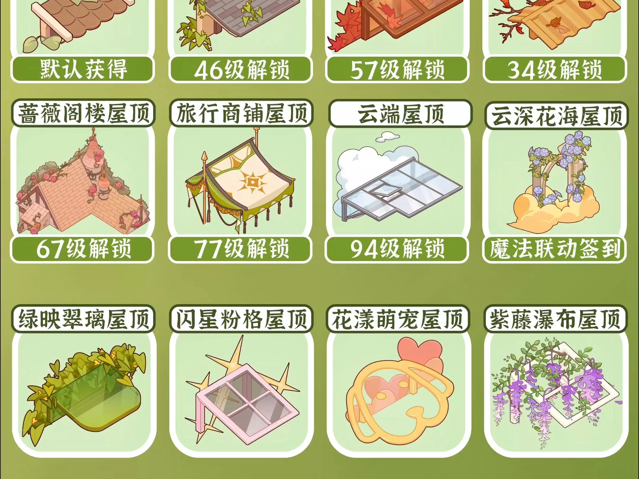 这是游戏《我的休闲时光》的内容分享,展示了14款零氪屋顶,包括砖瓦屋顶、欧式灰顶屋顶等多种风格的零氪屋顶样式,为玩家提供蜗居装扮参考。
