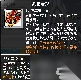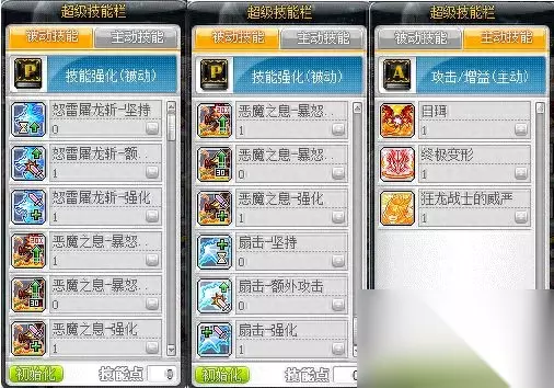 因此不妨四转也可以考虑试试用飞龙斩升级,升级的过程中,可以优先将部分基础被动技能先加满,提升基础攻击力以及基础属性。 3、超级技能部分: 主动技能:日珥、终极变形、狂龙战士的威严。 被动技能:怒雷屠龙斩-额外攻击次数加1、怒雷屠龙斩-强化、恶魔之息-暴怒坚持、恶魔之息-强化、扇击-强化。