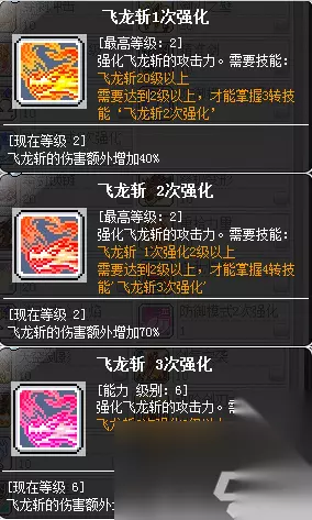 2、升级技能选择: 1-3转用飞龙斩升级: