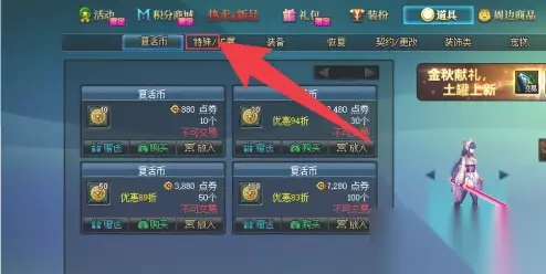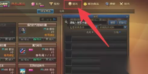 2、玩家打开商城页面后,就可以直接点击上方的道具。