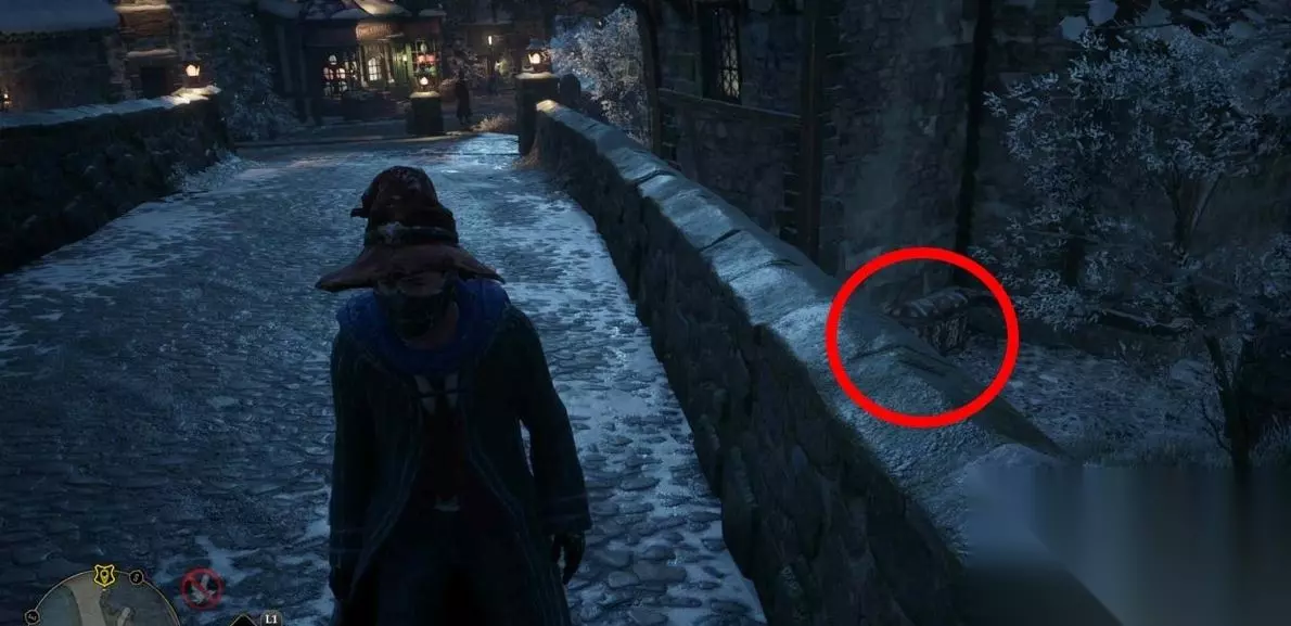 宝箱5 【霍格莫德】北边的桥边,建筑外的角落。