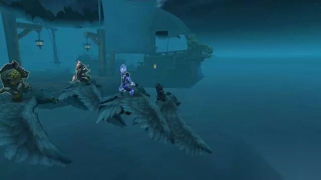 一行人乘着天角部族的白鹰飞行,趁着雾色潜入了暴风城。一路上,凋零者开始讲解任务要点。
