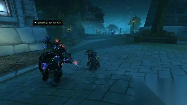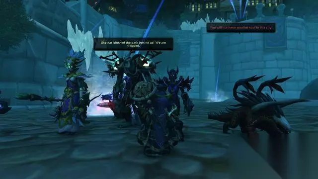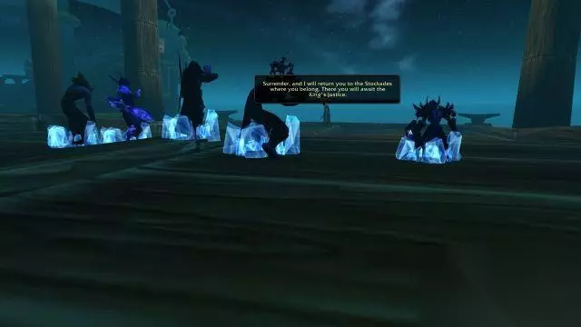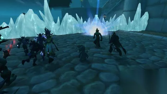 众人打碎冰墙,赶到码头的下一层。然而一支由暗夜精灵女祭司带领的部队拦住了去路。