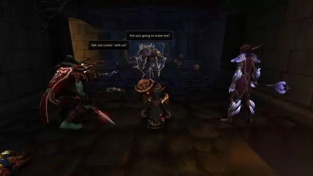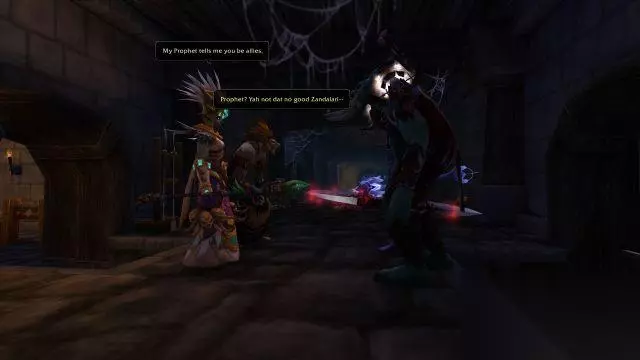 先知祖尔:你瞧,和我说的一样吧,公主殿下。我们的护卫来了。 他们就是希尔瓦娜斯来此的目标:赞达拉的公主塔兰吉,以及黑暗先知祖尔。 你们打开牢门放出了两人。