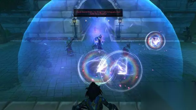 在无路可退之下,只能顶着冰弹的袭击拆冰墙。在绝境中,塔兰吉公主召唤了赞达拉列王的守护洛阿:雷赞的力量,展开了一个护盾结界以抵挡冰弹。 塔兰吉公主:我的洛阿啊,请听我的呼唤。强大的雷赞啊,把你的力量借给我! 洛罕:我倒是不知道还有雷赞这个洛阿,不过替我谢谢他的救命之恩。