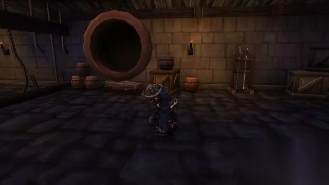 那是一个下水道的盖子。 打破盖子的锁后,你们跳进了管道中,最终沿着管道爬进了你可能来过也可能从没来过的《暴风城监狱》。这里正是监狱西侧尽头的一处囚室。