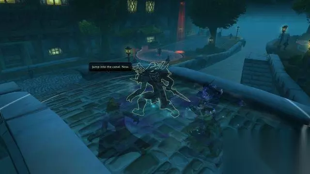 大家一头雾水。但是性命攸关之下,洛罕硬着头皮听从了祖尔的指示,带头跳下了运河。 刚跳下去时,桥上似乎什么都没发生。但正当大家以为被祖尔耍了的时候。一队骑兵通过了桥头。 尽管看不真切,但你却通过声音辨认出了为首的那人的身份。