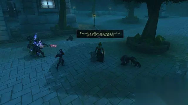 希尔瓦娜斯·风行者:你的队伍已经集结完毕,把我的货带过来,纳萨诺斯、。 纳萨诺斯·凋零者:他们已经在东部的飞艇塔楼处集合。我们到那边见吧。 来到塔楼处,你遇到了你的小队。 这个部队的组成:首席奥术师塔丽萨、洛罕、拉善·天角、纳萨诺斯·凋零者,外加几名死亡卫士。