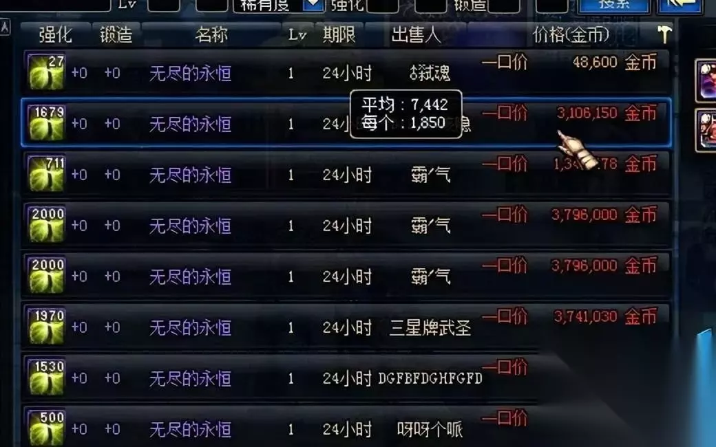 无尽的永恒可以说是用途最多的材料之一。起先它是“卡勒特指挥部”的门票,后来又变为进入异界、武斗大会的入场材料,随着版本更替,又变成进入魂·远古地下城的入场材料,而后又可以兑换娃娃机硬币的材料,堪称DNF史上的常青树。 之后的特殊材料,相信大家都非常熟悉了,魔刹石、诞生之芽、时空石、堇青石相继登场成为了一代玩家们的美好回忆。