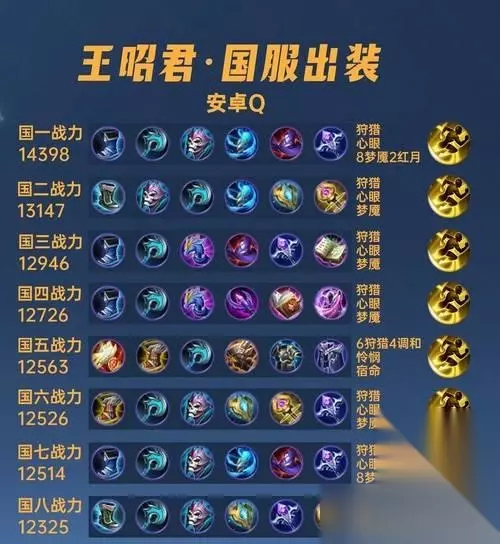 实战技巧与操作建议 在装备选择完毕后,实战中的操作同样重要。王昭君应利用自己的控制技能来限制敌方英雄的行动,确保自己的生存空间。同时,利用二技能的冰冻效果与队友进行配合,创造击杀机会。 结语 通过以上对王昭君新赛季混分出装策略的分析和建议,相信大家已经对如何在新赛季中搭配王昭君的装备有了清晰的认识。记住,装备的搭配要根据实际游戏情况灵活调整,才能发挥最大的效果。希望各位玩家在新赛季中能成功运用王昭君,勇夺胜利!