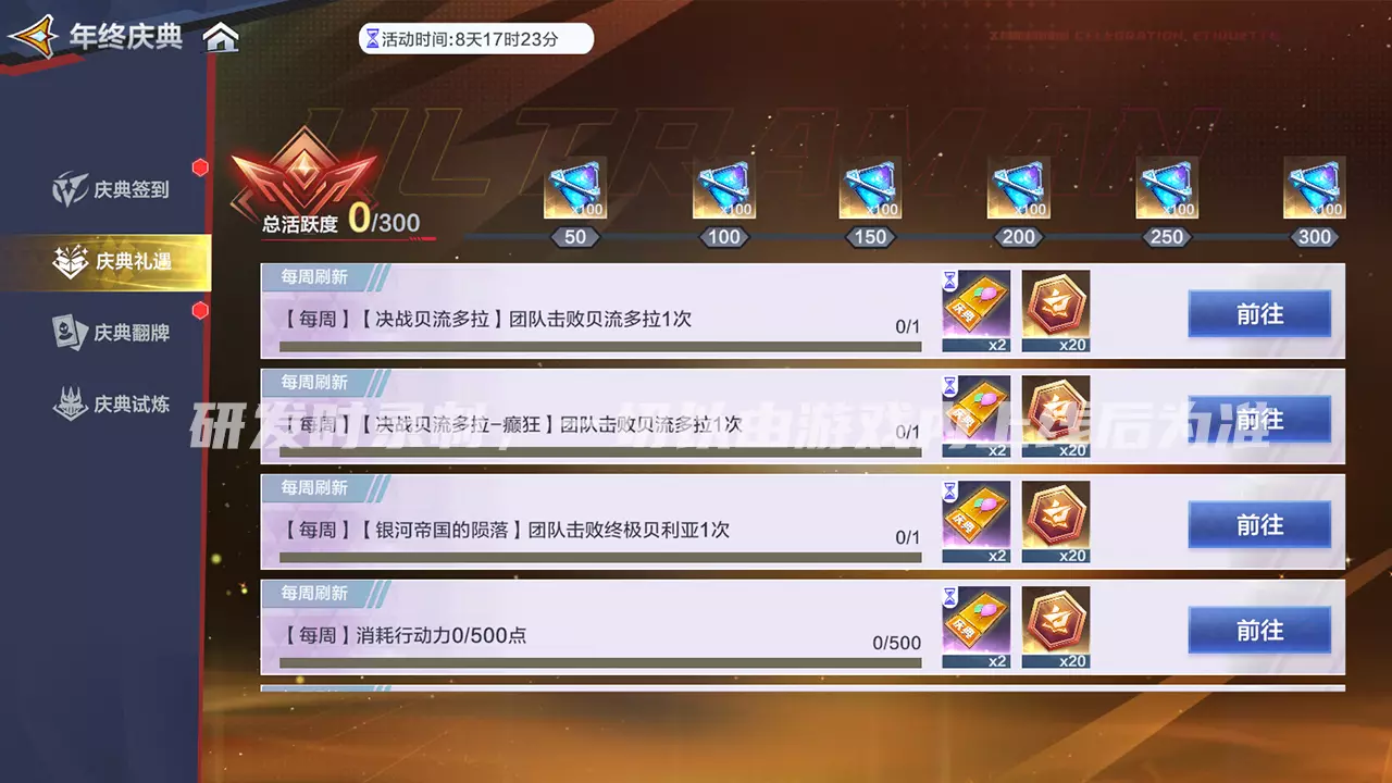 年末终极狂欢已进入倒计时,海量福利已全部备好!各位队员请做好参与准备,锁定《奥特曼:超时空英雄》年终庆典活动,在光之国的战场上延续奥特精神吧!