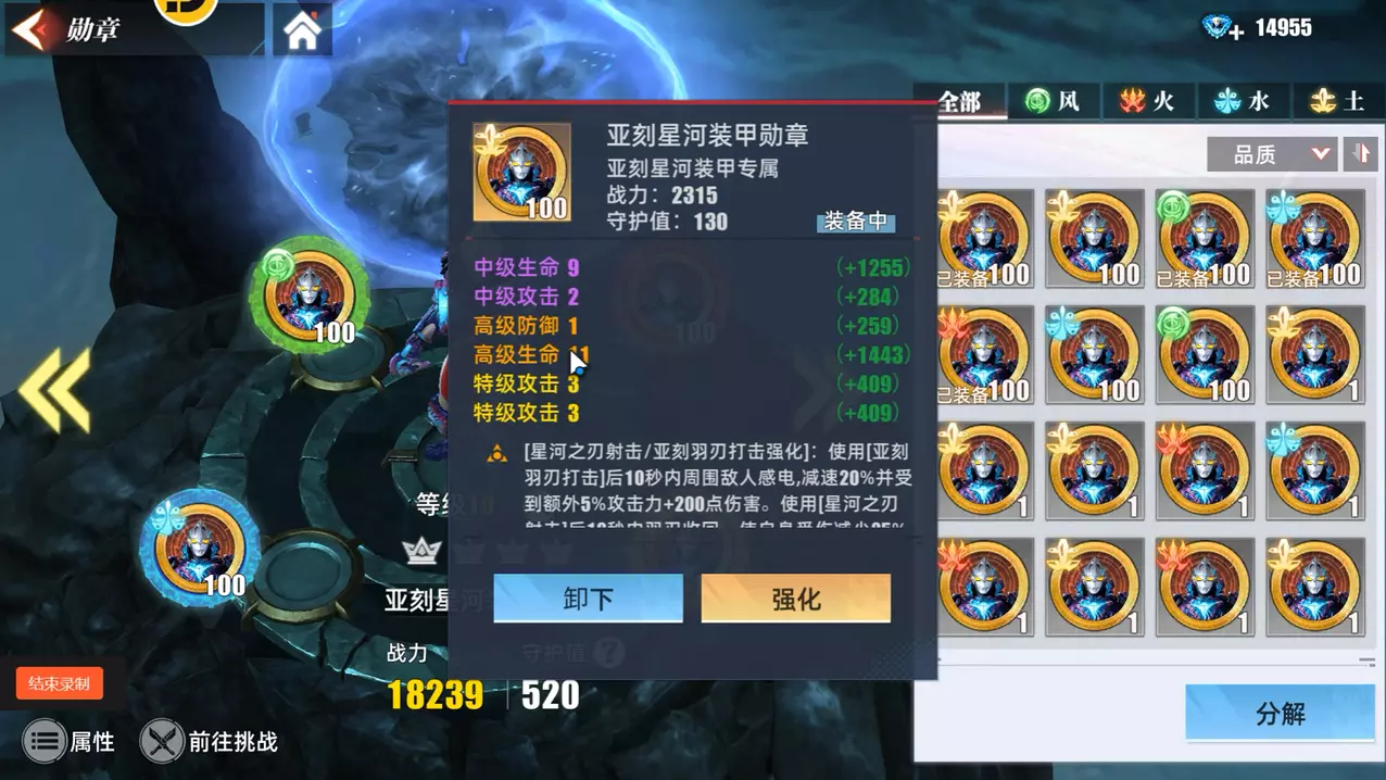 这是奥特曼系列游戏的相关内容,展示了游戏内的战斗画面与激斗玩法界面,作者表示在必剪创作的相关挑战中,已经打过了突破赛迦和金色勋章关卡。