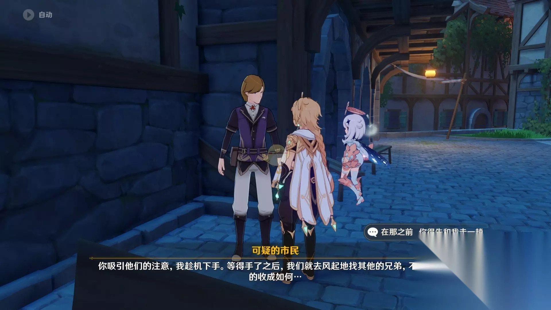 《原神》中寻找带着小包的可疑人士这个任务,要找的人,是在酒馆旁边,就是卢姥爷酒馆那边,天使的馈赠那里。主要是看名字,走近之后可以看到他的名字是可疑的市民,和他对话就可以了,主要看的其实不是小包,是他们的名字。