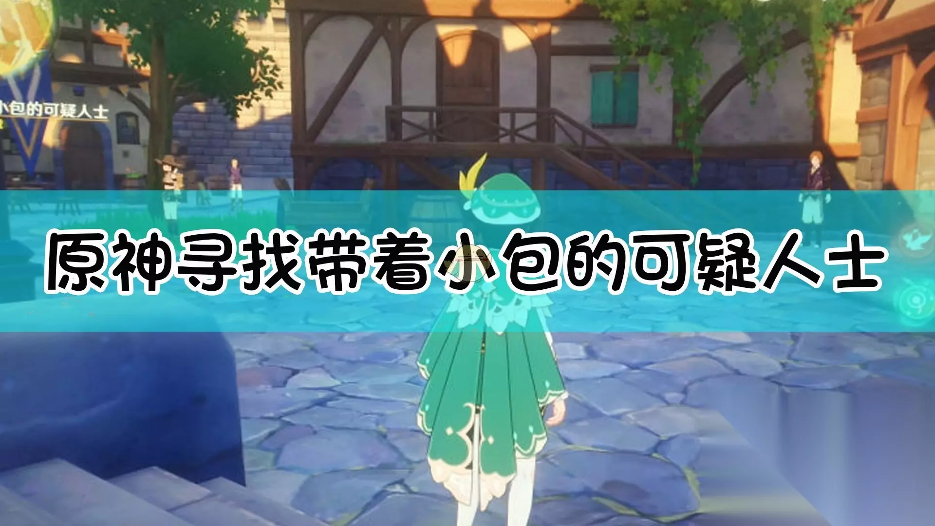 《原神》寻找带着小包的可疑人士完成方法介绍: 时间调成白天,在老卢酒馆前面一点,在一个角落,我也是找了很久 1、玩家可以打开元素视野,随着元素视野的脚步找,然后找到敌人。 2、带着小包的可疑人士就是节日里的不谐音任务的一个NPC,他是盗宝团的卧底。 3、任务中玩家需要找到盗宝团的卧底,带着小包的可疑人士的位置就在酒馆附近。 4、在任务期间酒馆附近会新上线个NPC“可疑的市民”,他就是带着小包的可疑人士。