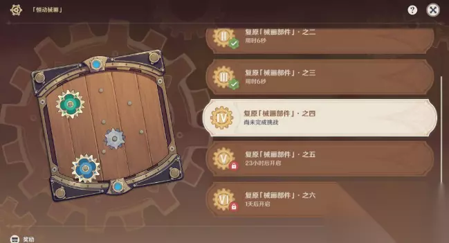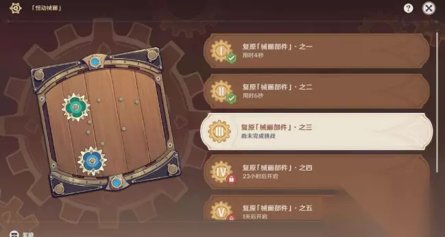 在原神中,最近开放了一个全新的活动叫做[恒动械画]。玩家们可以通过每天复原一个械画部件,最后组成恒动械画。恒动械画是可以放置在尘歌壶当中的。今天小编就为各位玩家带来了原神恒动械画攻略,需要这个攻略的玩家快来看看吧。 原神2.8版本攻略大全 原神恒动械画攻略 部件四 1、开始挑战复原部件四。