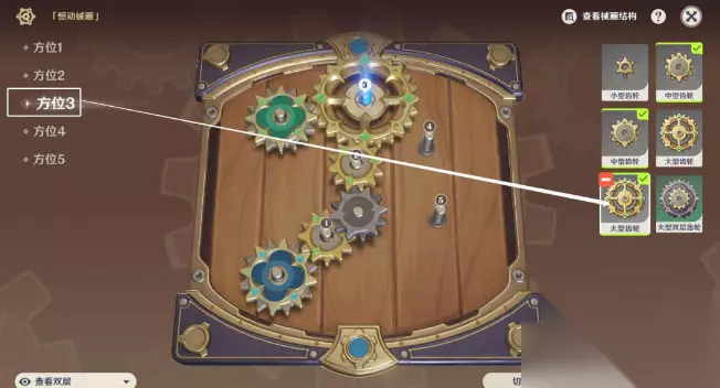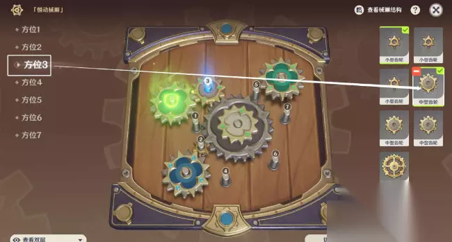 3、方位四:中型齿轮,上层。