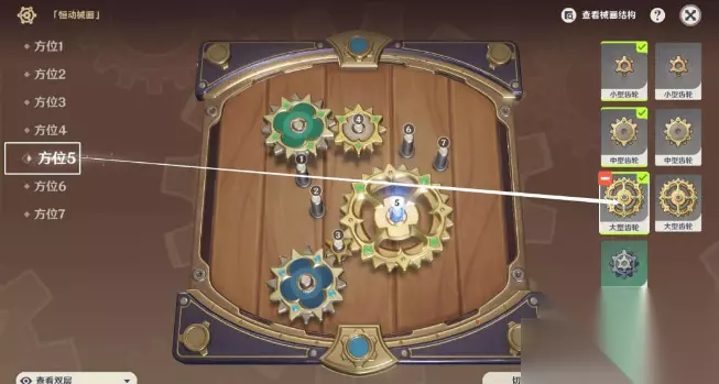 5、方位七:中型齿轮,上层。