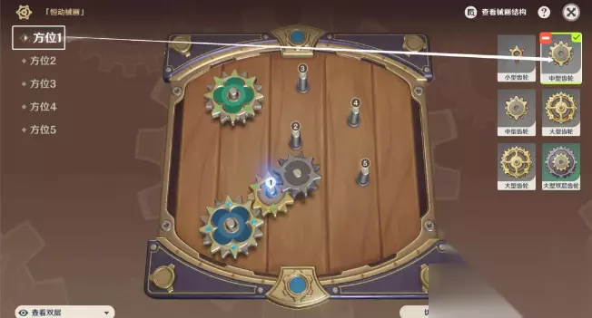 2、方位一:中型齿轮,下层。