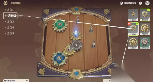 3、方位二:中型齿轮,上层。