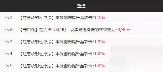 单看至终的仪式:稀有的【群体削弱】,高贵的【本源创伤】,独一无二的群体【重伤】,实用的【创伤减免-15%】。群体拐,一个非常辅助的仪式,直接提供【夜色亵渎者】的触发条件。有着100%(满塑140%)倍率的本源创伤的仪式也是不错的输出手段(本源伤害不吃除攻击力加成外的任何增伤易伤buff)。看上去很美好。 实战中的表现:做为本身就可以不怎么出牌的辅助而言,想要攒出五点激情基本就只能靠自动合成了,一次对局中的仪式使用也不会有c位那样高频,也不能拐【夜色亵渎者】。虽然攒到五点激情了也不会出现不如一张【attack】的情况。而且凑活的基础攻击面板,加上被动是以攻击力来回复的,提升奶量的同时也可以提升输出。但是做为不能洞悉Ⅲ的四星而言,基本上就没法和六星c位比输出。(什么叫你认识一位阿灵顿的童子军?)又是因为“极低双抗”所以需要尽可能保证生存而舍弃其他。 3.3.塑造3.塑造