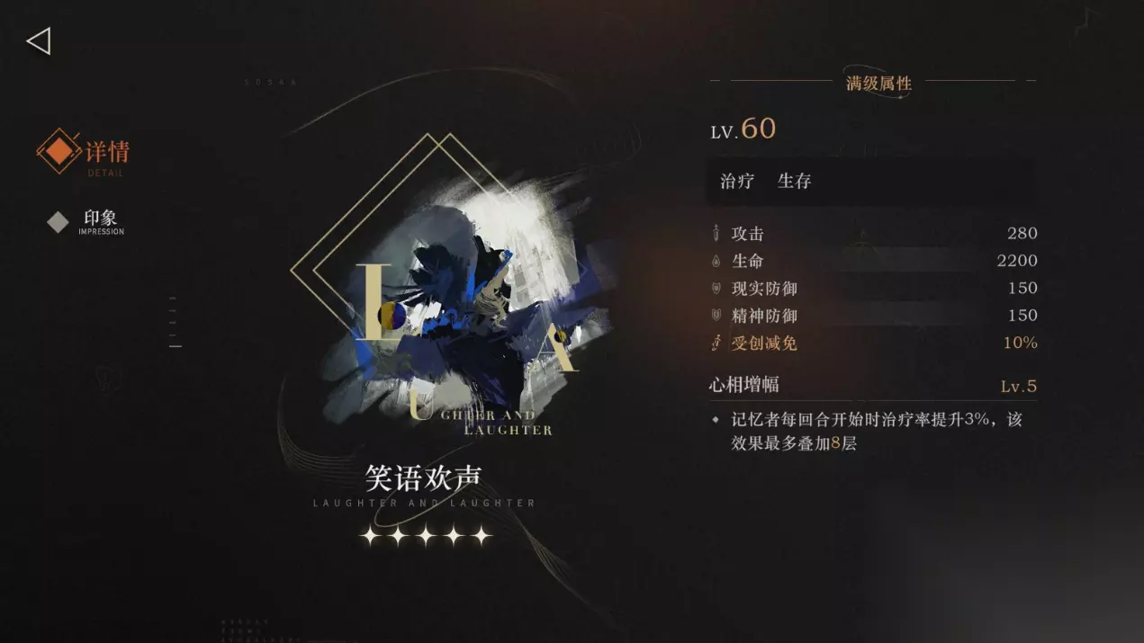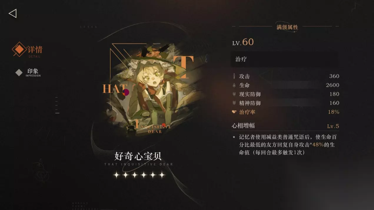 1.1.角色简评 1.角色简评 一位四星岩系神秘学家,游戏中定位为【重伤】【辅助】,作者将其定位为单核队辅助,建议谨慎培养。 基础面板:超低的双抗,平庸的攻击力,堪比六星的生命值。