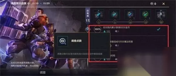 《英雄联盟手游》海克斯大劫案逮捕攻略 逮捕对象:毛皮皮 活动时间:2021-11-10至2021-11-29 活动规则: 1、活动期间,参与对局完成任务,即可领取调查点与蓝色晶石奖励; 2、累计完成1、5、10、15、20个任务,可领取表情、头像、英雄等丰厚奖励; 3、消耗调查点,可解锁5个地点的不同线索,快来调查线索,定位嫌疑人,寻找真相吧! 4、玩家需要完成对应的任务解锁调查点数,只有完成上一个任务才能解锁下一个任务。 调查区域: 数量:5 名称:上城区、钟楼、学院广场、港口、咖啡馆 证据:每个区域有4个线索,总共20个线索