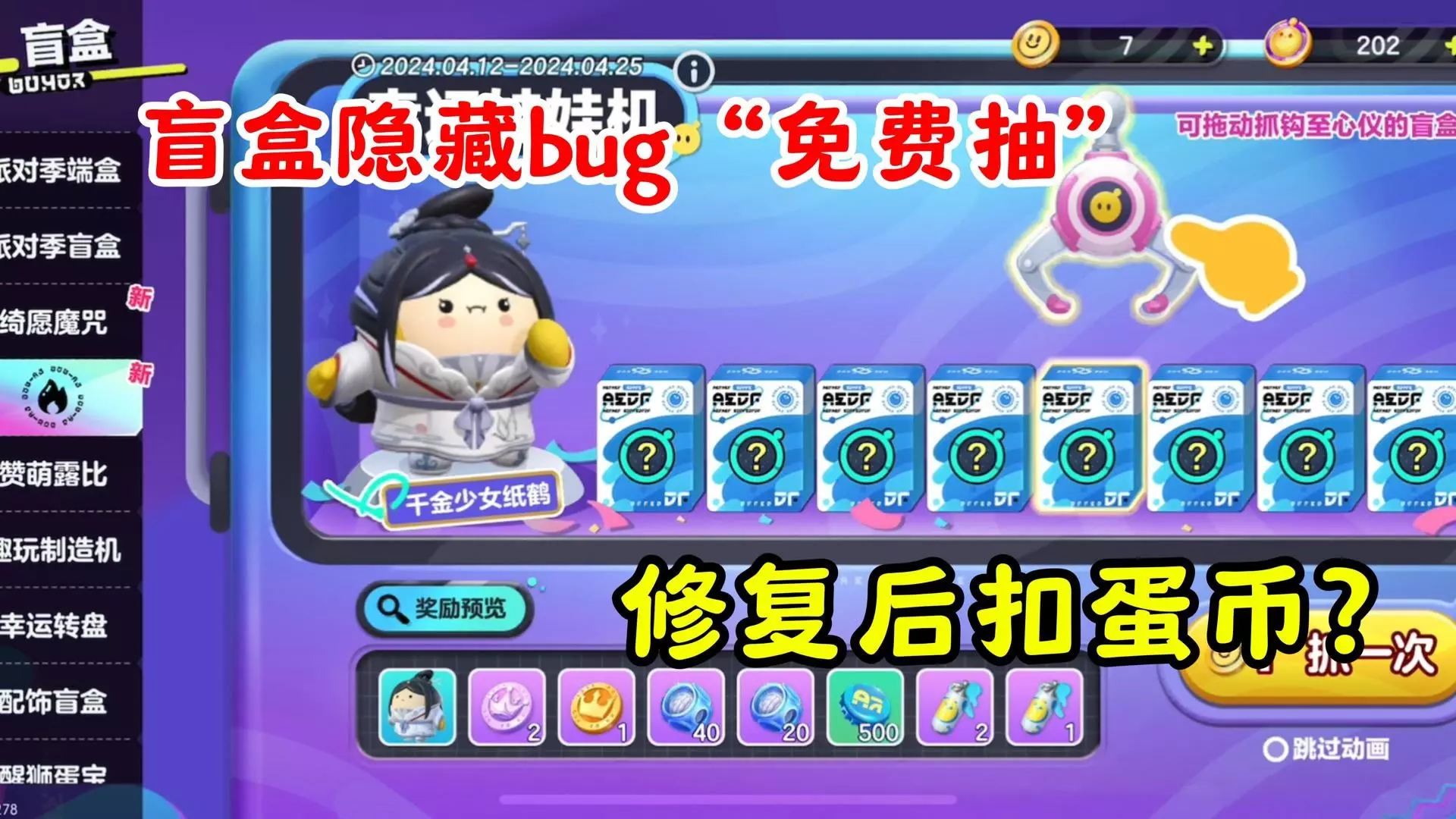 蛋仔派对潮玩大作战:蛋仔抽盲盒今天免费抽,冈易不会偷扣蛋币吧