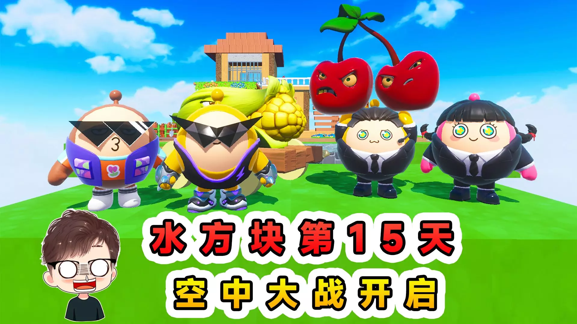 蛋仔派对:水方块生存第15天!空中大战开启,摸资源对轰!