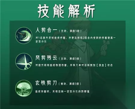 孟涂的1技能【人剪合一】可以对1名敌方灵妖造成伤害,并且在接下来的两个回合内,使目标受到的伤害提高一定的百分比;2技能【风卷残云】是对敌方前排3名灵妖造成伤害,并且有一定的几率对目标施加流血状态,被动技能【玄铁剪刀】则是在攻击时无视目标一定的防御值。 推荐搭配灵妖:驰狼 孟涂的2技能是小范围的群伤技能,并且有几率对目标释放流血效果,而驰狼的2技能【嗜血杀戮】对处于流血状态的灵妖造成伤害会大大提升,两者搭配可以打出十分不错的效果。 使用技巧: 孟涂是九州阵营一名十分不错战士,在队伍出场位置上的要求并不高,放在前排或者后排均可,可以根据自己的阵容灵活调整。 以上就是本次233乐园小编为玩家带来的有关于山海有灵妖孟涂的攻略,孟涂是一位非常不错的战士,在配合上高输出的灵妖可以造成非常高的爆发。 山海有灵妖角色技能属性攻略 女魃 祸斗 蚩尤 腾蛇 驮 旋龟 重明 陆吾 伏羲 力牧 魑魅 数斯 毕方 嘲风 睚眦 雨师 宵明 夔牛 风伯 孟涂 驰狼 鸾 玉兔 文鳐 夏启 胜遇