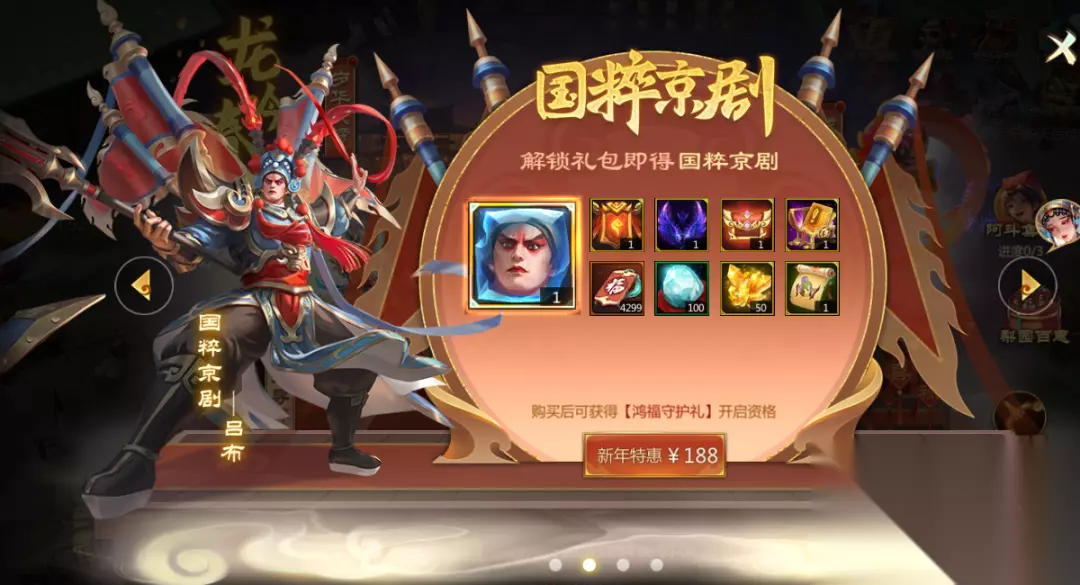 封灵玉*国粹京剧同时,礼包中还有一个封灵玉同名称号国粹京剧(称号),以及龙吟春晓武器甄选、暗金坐翅自选等好礼,梦梦就不多做介绍啦。 值得一提的是,解锁国粹京剧礼包可解锁【鸿福守护礼】开启资格。仅需68元购入【鸿福守护礼】即可获得鸿福签*3999和守护卡*150!一折礼包,心动不心动~
