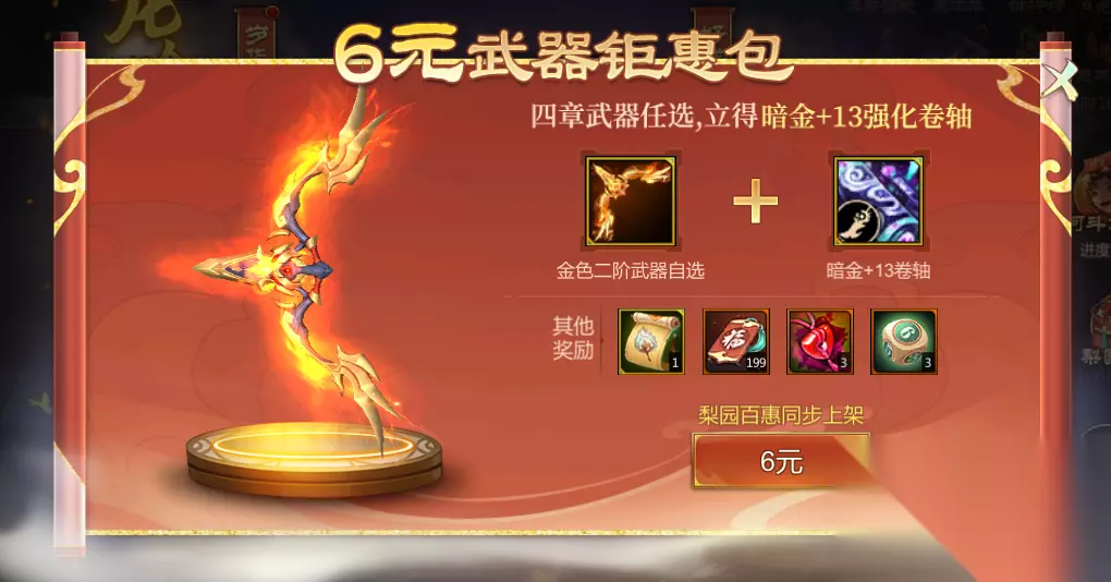 6元武器钜惠包也会同步上架到梨园百惠中,各位仙术师按需选购哦~ 梨园周礼