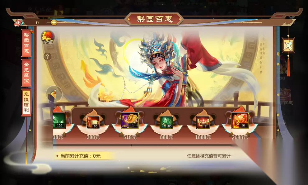 这样下来,仙术师的累计充值已经达到了398元,不仅可在珍宝中获得900鸿福签、珍宝宠物自选等好礼,还可以在前文提到的梨园百惠充值福利中领取暗金破天打造书等福利,仙术师记得看看哦~