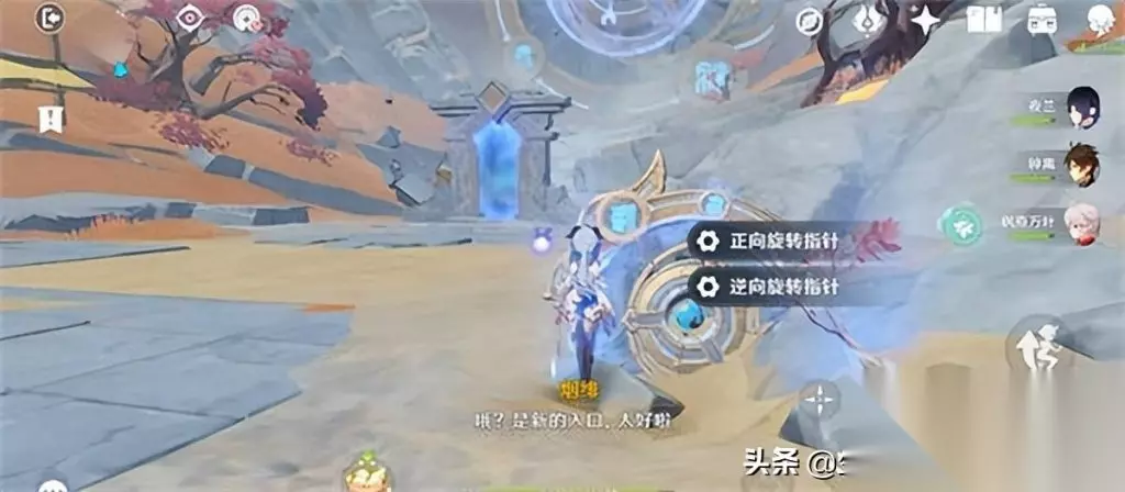 3、然后是逆时针转动到最下面,这个时候门是黄色的,进入之后过剧情,最后把盘子的指针逆时针转一下,然后进门过剧情,这样我们的任务就完成了。