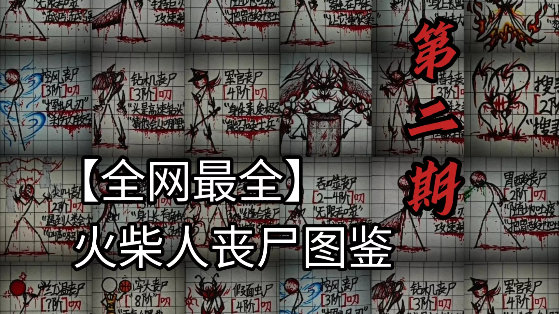 这里是小漫火柴人peace创作的火柴人丧尸图鉴重置版内容,展示了武装丧尸、丧尸狗、极速丧尸等多种不同丧尸火柴人设定,标注了每种丧尸的血量、攻击力与特点,是趣味原创火柴人丧尸设定作品。