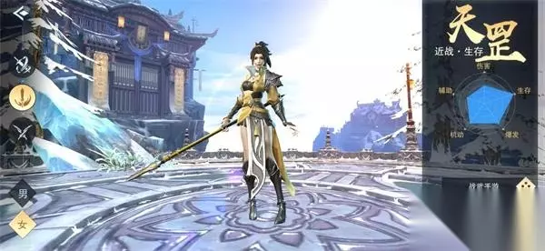 2)天罡:定位是近战+生存,此角色生存能力强,主要是肉盾,但是伤害较弱