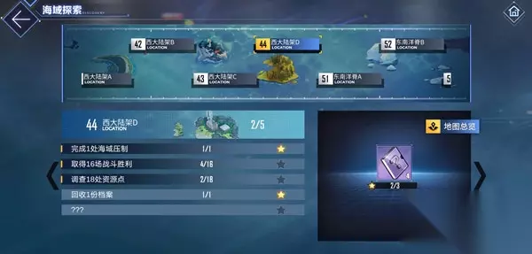 作战说明 NA海域中有多个地区需要进行探索,前往海域内的港口后可在港口中使用接取任务、购买补给、管理停泊舰船等功能。 ※在作战中点击【情报】查看冒险信息,可了解当前的探索进度、海域目标等多项信息; ※完成相应的海域目标可累计海域探索星数解锁更多奖励内容; ※探索星数的海域目标只可完成一次,不会大型作战重置而刷新; ※奖励除心智魔方、喵箱SSR型等各项资源外,还可获取<高效作战指令书>、<塞壬坐标记录仪>、<特别兑换凭证>等资源; ※更多详情可以在游戏内“?“中查看