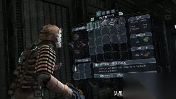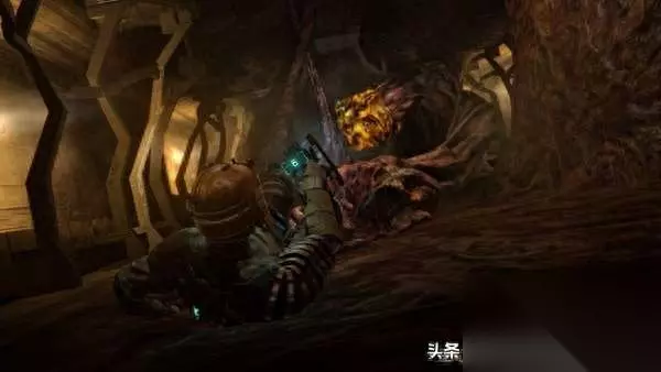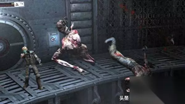 在此之前能让我觉得恐怖但又不是僵尸题材的游戏就是《毁灭战士》了,没想到多年后的《死亡空间》利用宇宙自带的神秘感压迫感,所营造的恐怖压抑氛围可以让我再一次感受到害怕。 【故事背景】 《死亡空间》的故事发生在一艘的大型太空飞船上,飞船内的通道与空间相对狭小,房间与过道充满阴冷诡异的气氛,伴随而来的是隐藏在黑暗中的恐怖异形。主角艾萨克·克拉克(Isaac Clarke)将时刻面临死亡威胁,主角需要尽一切力量挑战无尽的死亡空间,并逃出生天。 由于游戏的主要场景发生在狭小的飞船内部,其中一些区域还遭到了破坏出现了真空、失重或毒气等特殊环境,玩家需要通过使用增压服和磁力靴进行调整。在此类环境中,氧气量会极速下降,所以玩家必须迅速通过这些区域补充氧气,否则将窒息而亡。 本作一反传统射击游戏的菜单信息界面设定,改用独特的3D全息影像的表现方式。利用这种3D全息影像,玩家可随时就地整理枪械、弹药、物品,以及查看地图。由于游戏是即时进行,因此玩家在做上述动作时较容易受到攻击。 《死亡空间》的战斗引入了一种叫做“策略性肢解”的设定,玩家可以通过切断变异死体的四肢、触手等位置给予敌人毁灭性打击。 由于艾萨克·克拉克只是一名工程师而非士兵,因此游戏中的主要武器都是采矿工具改装而成。所有武器均两种攻击模式,像等离子切割枪就可通过旋转攻击方向来改变子弹发射轨迹,从而适应环境与敌人的变化,发挥武器的最大效能。游戏中还有自动化商店,玩家可在此进行买卖、存储物品,或升级太空服。此外还可通过工作台对武器进行升级和改造。 除枪械武器外,玩家在游戏中还能自由使用停滞(Stasis)与应激(Kinesis)两种特殊技能,前者能让目标对象暂时放缓运动速度,后者可实现隔空取物或抛物攻击。枪械与技能的自由组合能让玩家现实丰富多彩的攻击手法。 此外,游戏中还有一些迷你游戏(mini game),游戏疲劳时玩家可用来放松一下心情。 【游戏剧情】 故事发生在2508年。一艘在伊吉斯7(Aegis VII,另译:庇护7、神盾7)殖民行星附近进行采矿任务的千人制大型太空飞船石村号(USG Ishimura。Ishimura是日文罗马音,对应汉字为:石村)向CEC(Concordance Extraction Corporation、和谐开采公司)发出了求救信号。CEC接到信号后,随即派遣一艘名叫科利昂号(USG Kellion)的小型飞船前往石村号所在地调查。作为太空工程师的艾萨克·克拉克(Isaac Clarke)随同其他四名CEC雇员一起出发。艾萨克之前曾接到在石村号上担任医务官的女友妮可·布伦南(Nicole Brennan)发来的奇怪视频信息,此行目的也为确认女友的安危。 就在科利昂号试图着陆于石村号的时候,石村号的引导系统发生了故障,科利昂号坠毁在石村号的船坞里。迫降后一行人随即对飞船展开调查。小队成员在探索石村号内部的大堂时遭到了不明生物尸变体(Necromorph)的攻击,约翰斯顿下士(Corporal Johnston)与陈下士(Corporal Chen)先后罹难。一行人中只剩下主角艾萨克·克拉克(Isaac Clarke)、黑人保安扎克·哈蒙德(Zach Hammond)及女性乘务员肯德拉·丹妮尔丝(Kendra Daniels)三人。突发的意外情况又使艾萨克与其他二人分开,艾萨克一边独自调查飞船内部,一边又要与哈蒙德、丹妮尔丝时刻保持联系并相互提供帮助。 在石村内部的探索中,艾萨克躲过了幸存者之一柴勒斯·默瑟(Dr.Challus Mercer)犹如神经病般的攻击。通过调查还发现在里面散落着很多影音和文字资料的碎片,它们讲述的都是在艾萨克一行人登陆石村号之前发生的事情。信息显示石村号的船长是一个名为统一教(Church of Unitology)的宗教徒,这个宗教规模非常庞大,有相当强的渗透力。石村号的任务就是为了在伊吉斯7行星上取得这个宗教认为具有价值的遗迹——信标(the Marker;可理解为“神迹”),统一教会企图利用石村号将信标带回地球研究。整个任务其实是一个非法的采矿行动。 当信标被搬上石村号之后,所有伊吉斯7行星上的居民都患上了抑郁症,并逐渐不受控制发展为暴力倾向,最终演变为互相残杀。居民死后的尸体变异为恐怖暴力的怪物——尸变体(Necromorphs)。殖民地上的一个保卫员(Security)在目睹了女儿自杀后,抱着女儿的遗体驾着飞艇逃往石村号,结果也把藏在飞艇中的外星生命体一同带入。殖民星球上的灾难于石村号上重演,外星生命体在飞船内四处杀戮,并将接触到的尸体转化为尸变体(Necromorphs),尸变体已没有了人类的特征,其外貌变得十分恐怖,行为凶残至极,它们以疯狂残杀生命体来获得新的寄生体。 艾萨克在不断受到尸变体袭击的同时,穿梭于石村号的不同区域进行各种修理任务。在应急系统修理完毕后,三人发送了求救信号,成功联系到了另一艘飞船勇气号(USG Valor)。怎料勇气号上的人员在不知情的情况下,接收并打开了哈蒙德为了封闭尸变体而发射出去的逃生艇,导致勇气号上的船员被尸变体屠杀殆尽,同时勇气号也撞上了石村号的货物舱。 幸得石村号的另一幸存者特伦斯·凯恩(Dr Terrance Kyne)博士联系上了艾萨克,建议艾萨克尽快将信标退还到伊吉斯7(Aegis VII)行星上,艾萨克认为这个信标是用来阻止尸变体的首脑(Hive Mind)对个体指示行动的信号。艾萨克在凯恩等人的帮助下,成功拿到了勇气号的能源核心,用来为石村号上一艘已损坏的穿梭艇提供能源,但哈蒙德不幸在夺取能源核心的过程中被杀。 凯恩认